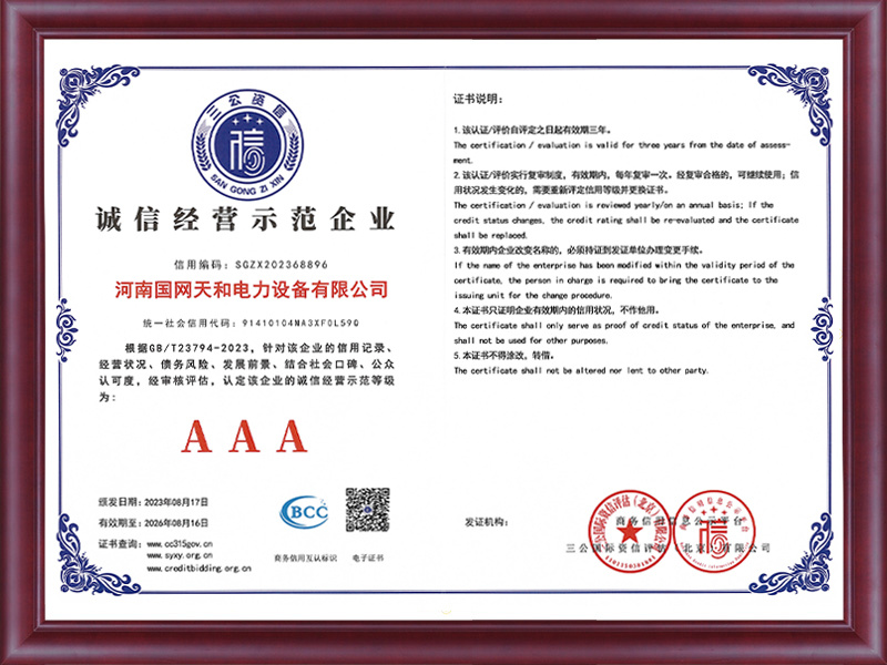 河南国网天和电力设备有限公司坐落于河南省郑州市经济开发区,是一家从事生产和销售输配电一次电力设备和二次控制设备及相关自动化技术的的综合性企业,曾获得中国企业信用评价中心颁发的“河南省守合同重信用企业”“质量信得过产品”等荣誉。